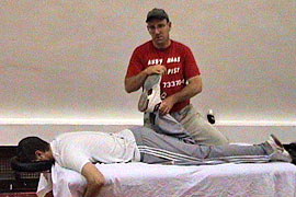 Playoffs: Andy doing sports massage to the athletes on both teams.